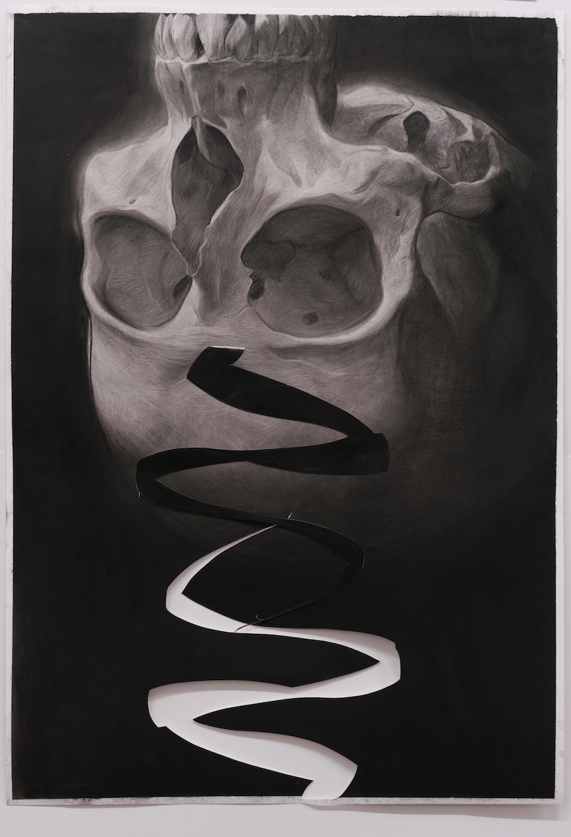 “With the cut-out and turned around, the skull all of a sudden takes on other qualities, like a landscape, a mountain, a cathedral.” [Der Code]